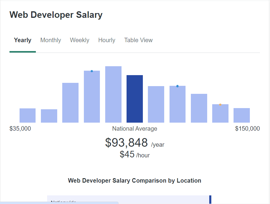 Web developers in Canada are crafting digital magic with an average annual salary ranging from $93,848 to $150,000. Not bad for a gig where certificates aren’t stealing the spotlight, huh?